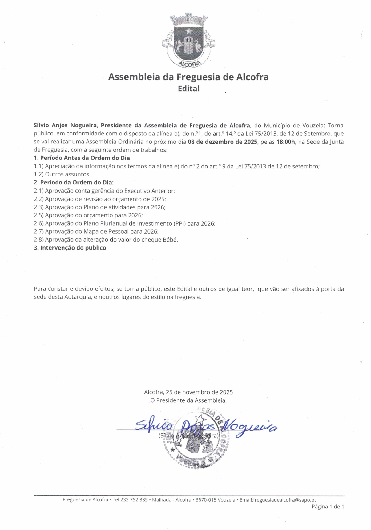 Cumprimento todos os Alcofrenses e público em geral.